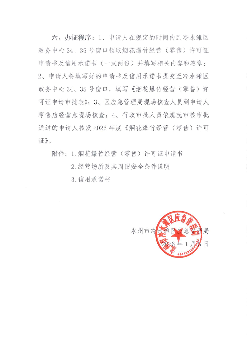关于办理2026年度烟花爆竹经营(零售)许可证的补充通知