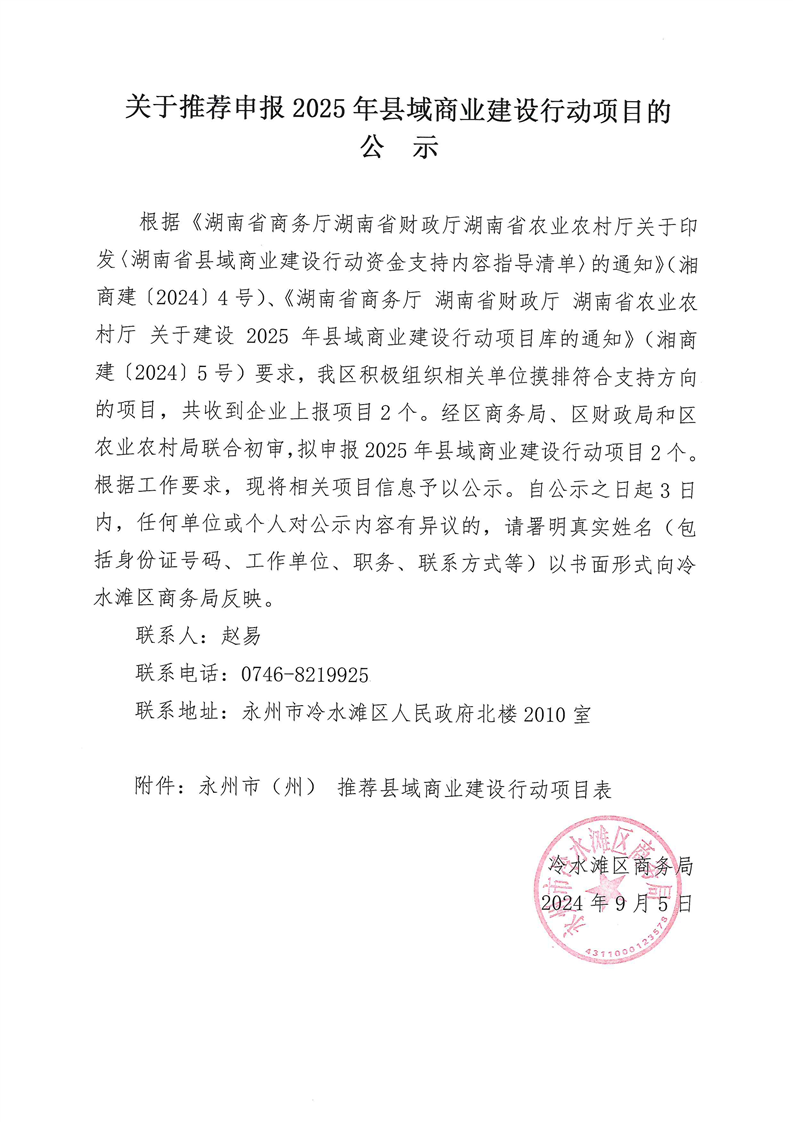 关于推荐申报2025年县域商业建设行动项目的公示