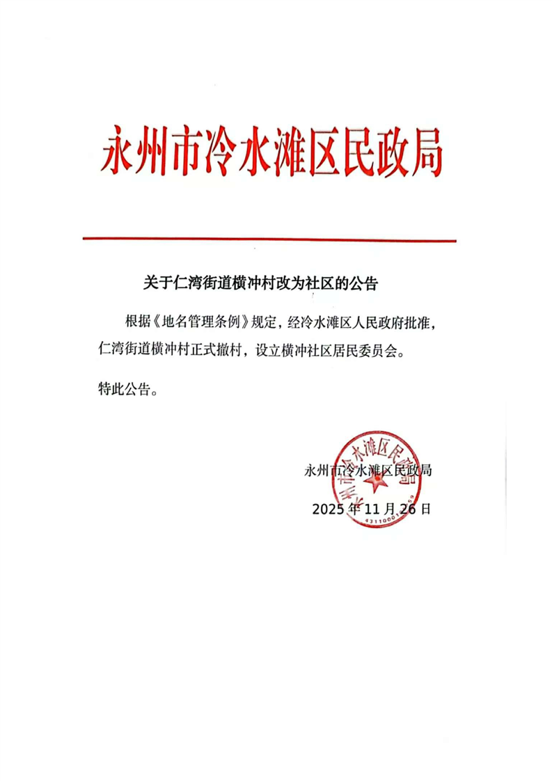 发文机关: 冷水滩区民政局 发文日期: 2025-11-27