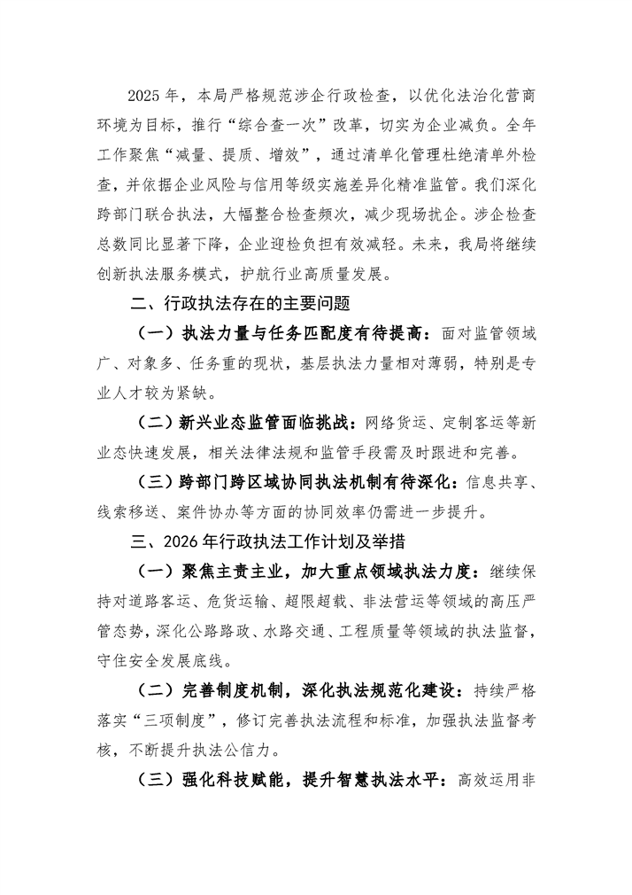 冷水滩区交通运输局2025年行政执法报告