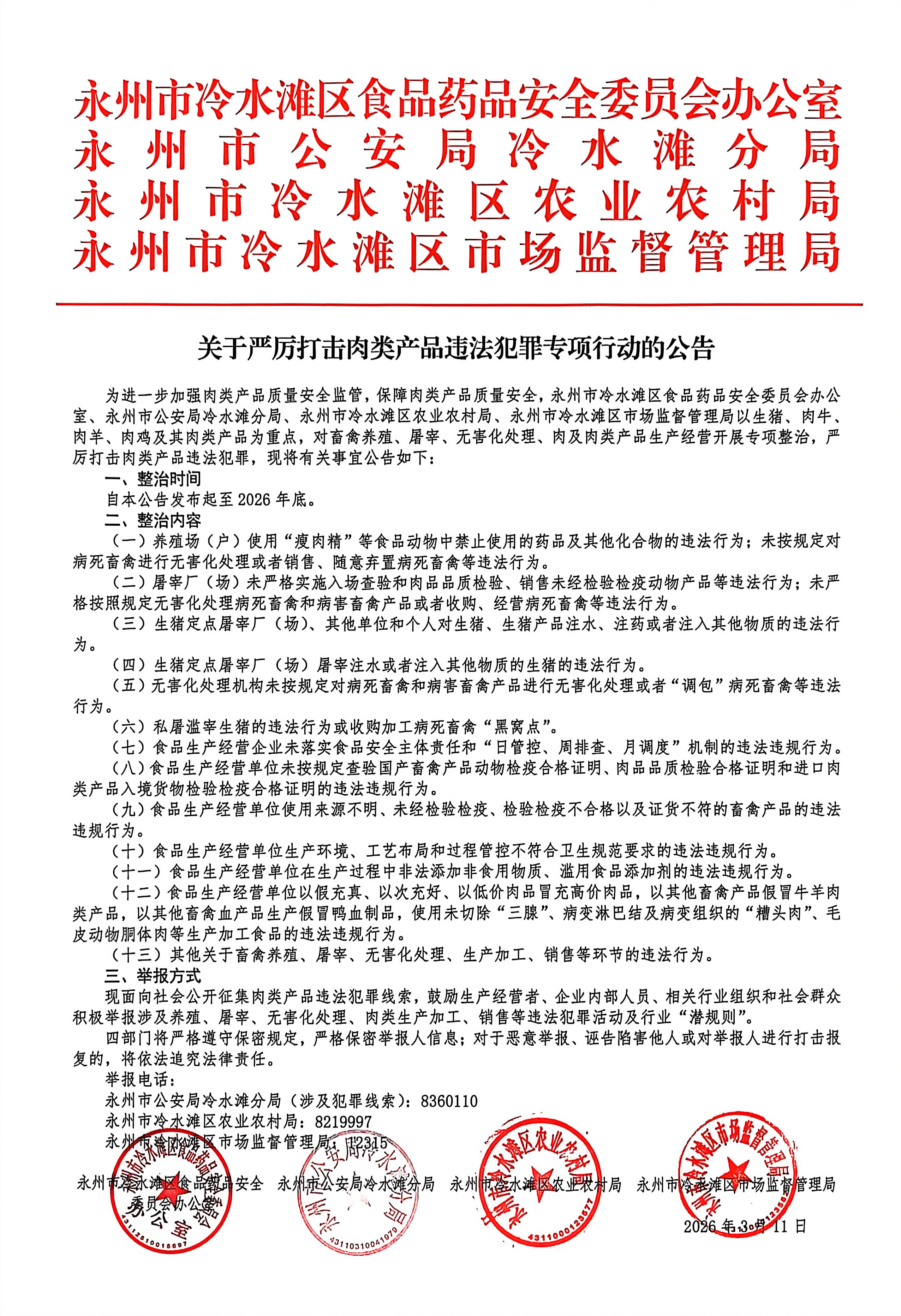 关于严厉打击肉类产品违法犯罪专项行动的公告