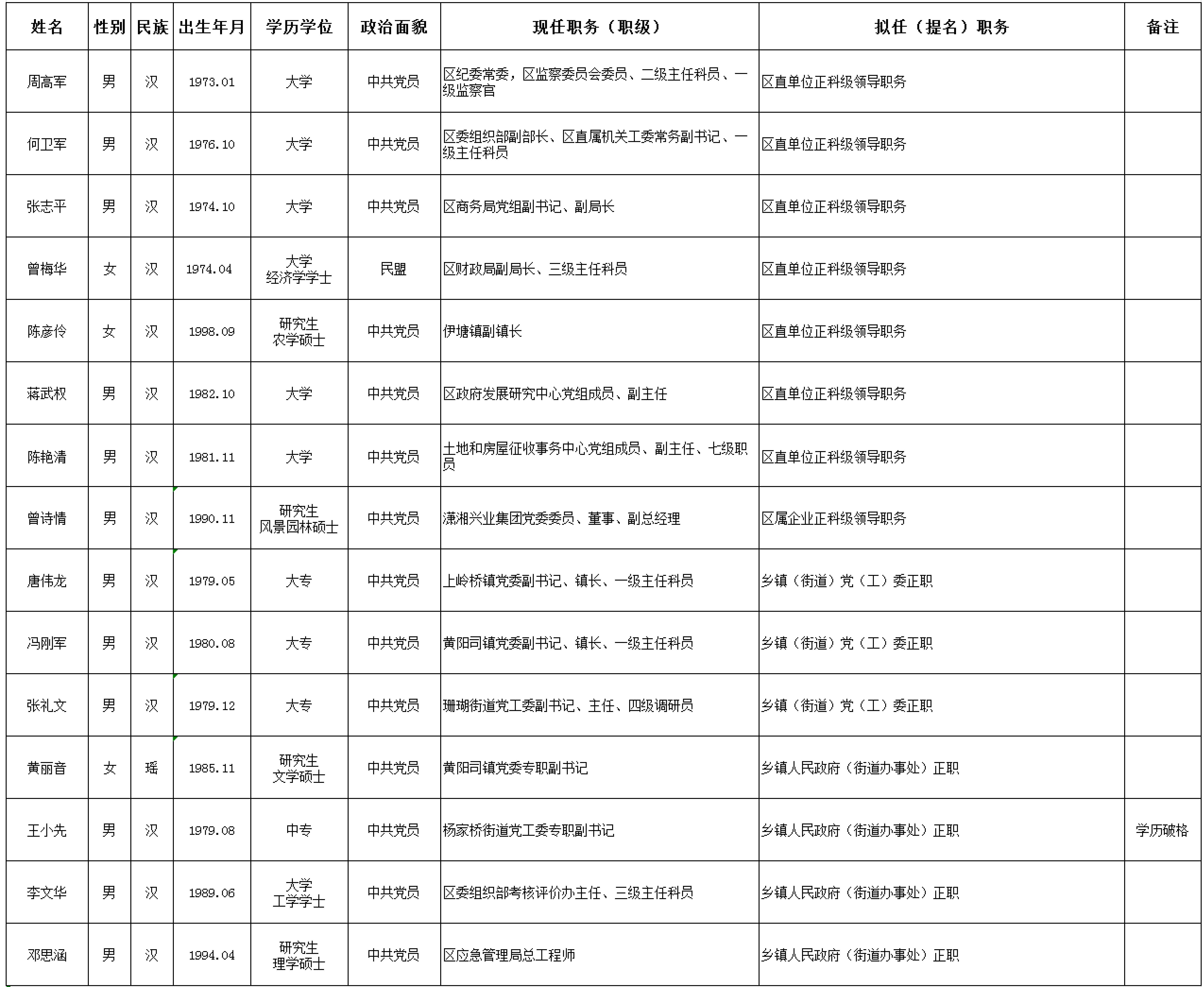 为加强对干部选拔工作的监督,提高识别和任用干部的准确程度,现对区委常委会议研究决定的下列15名拟任(提名)人选进行任前公示: