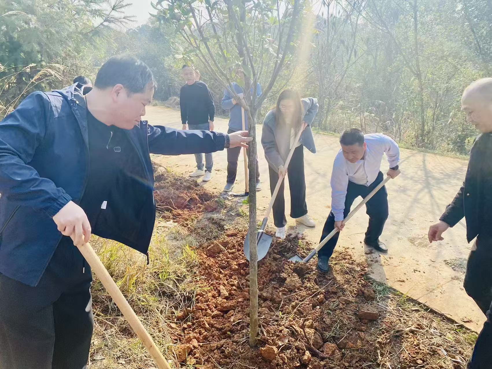 活动现场,大家三五人一组,挥锹铲土、扶苗填坑、踏土夯苗、提水浇灌,以实际行动为生态环境建设增绿添彩。经过两个多小时的紧张劳动,130余株新栽种的桂花树苗迎风挺立,为初春的大地增添了新的绿意。