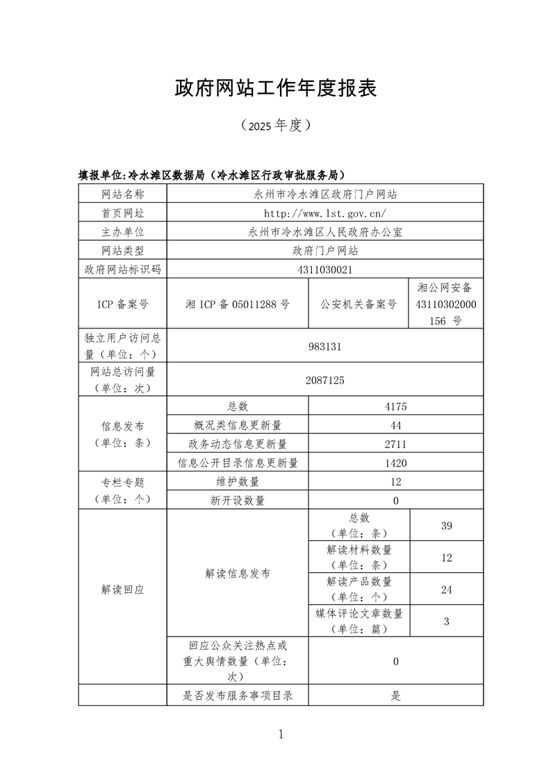 2025年永州市冷水滩区政府网站工作年度报表