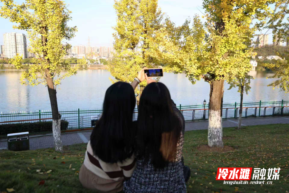 “今天天气特别好,我们来到这里赏银杏叶,今天秋高气爽的,太阳照得正好,心情也很美丽,我们姐妹约出来跳跳舞开心一下,放松一下心情。”市民邓女士说道。