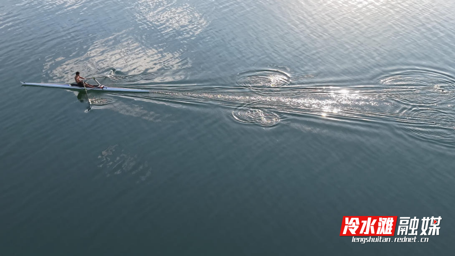 训练中的皮划艇划破平静水面(李秋燕 摄)