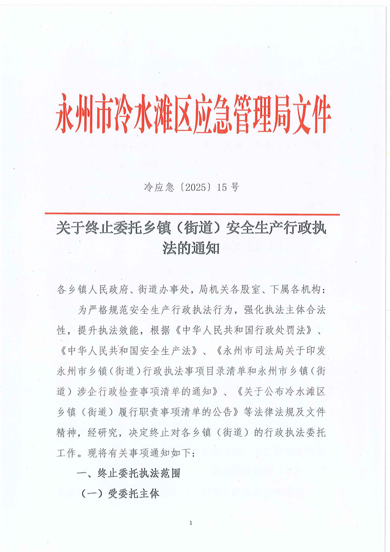 关于终止委托乡镇(街道)安全生产行政执法的通知