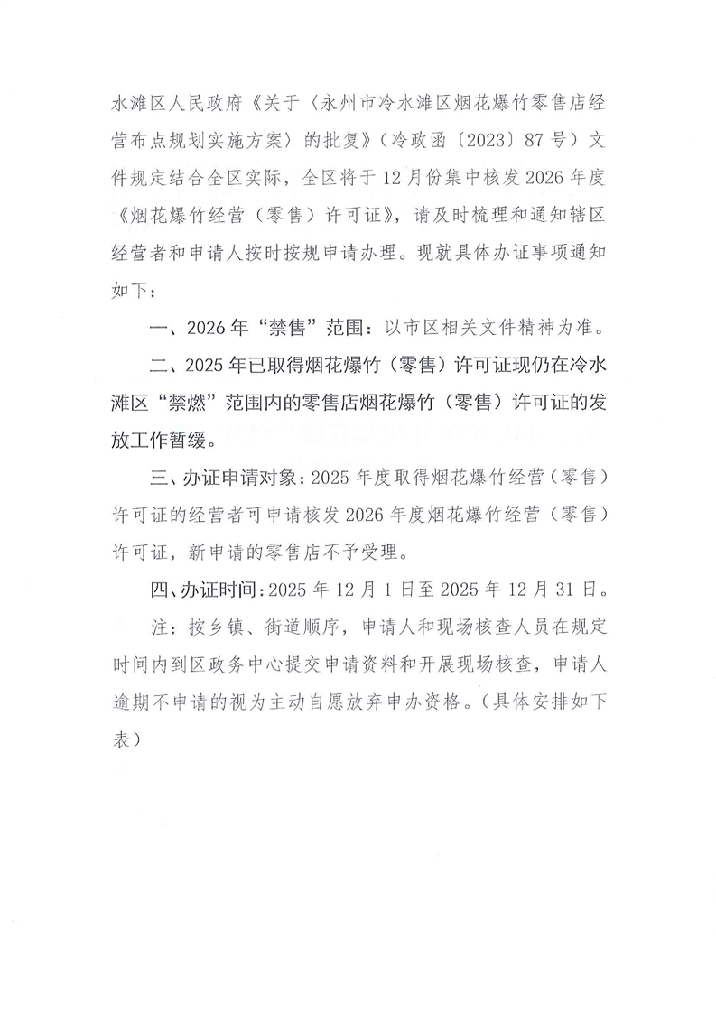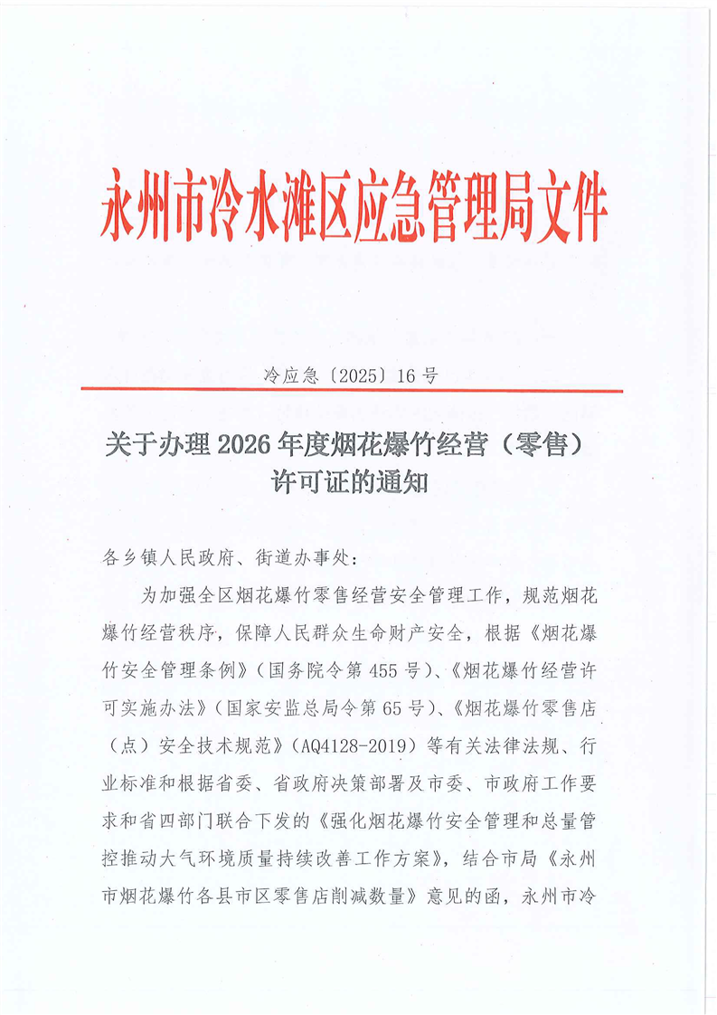 关于办理2026年度烟花爆竹经营(零售)许可的通知
