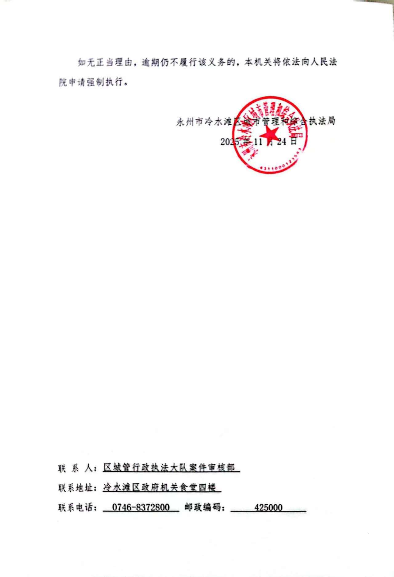 永州市冷水滩区城市管理和综合执法局