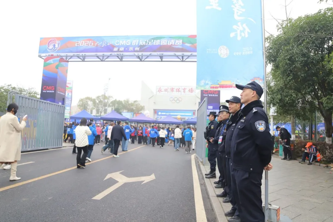 高位部署筑牢赛场安全根基。此次赛事规格高、影响广,中央广播电视总台将全程转播,观赛人流密集,安保任务艰巨繁重。赛前,冷水滩公安分局第一时间成立安保工作领导小组,领导靠前指挥,多次带队赴永州市体育场及周边区域实地踏勘,全面排查场地设施、消防器材等安全隐患,做到不留死角、不漏盲区。秉持“一赛事一方案”原则,细化到点、责任到人,确保各项安保措施落地见效,从源头拧紧赛事“安全阀”。