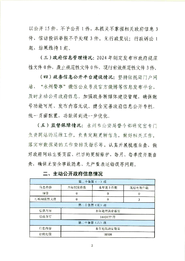 名称: 永州市公安局2024年信息公开工作年度报告