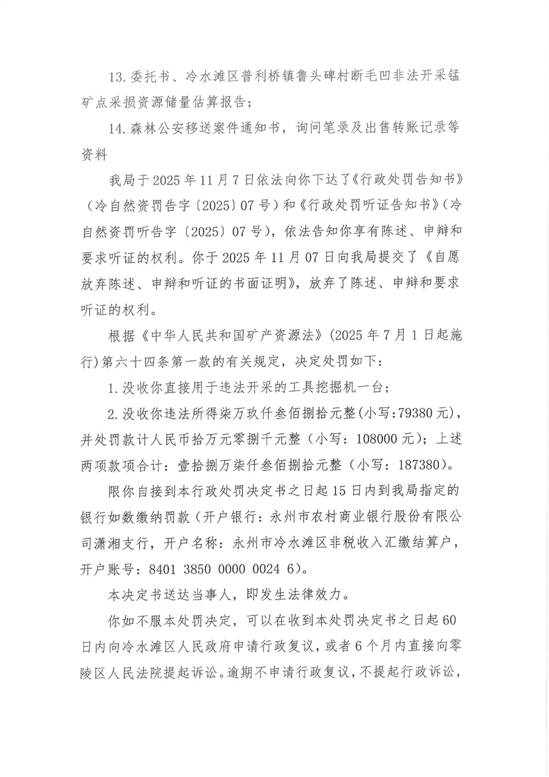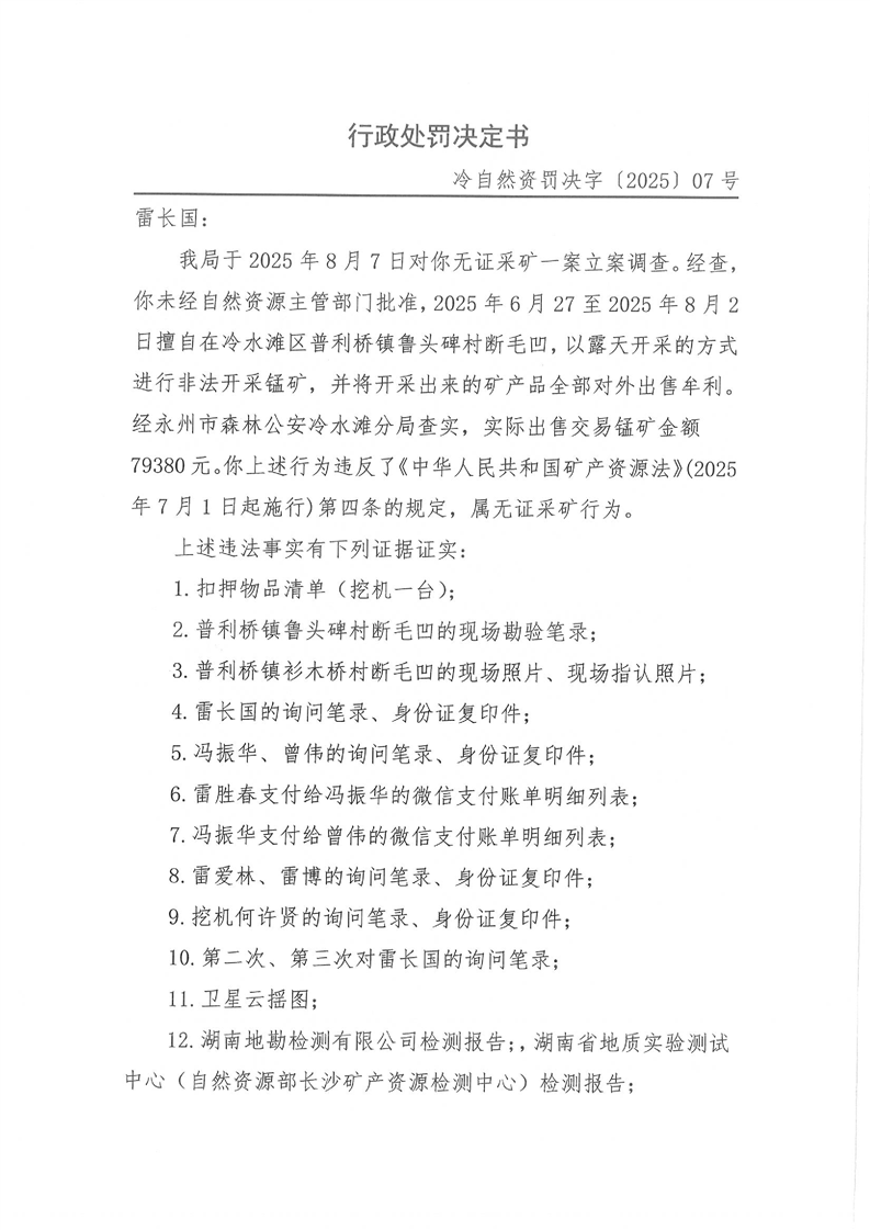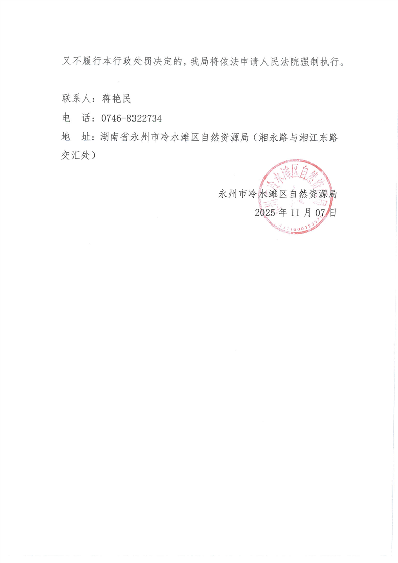 行政处罚决定书 冷自然资罚决字[2025]07号