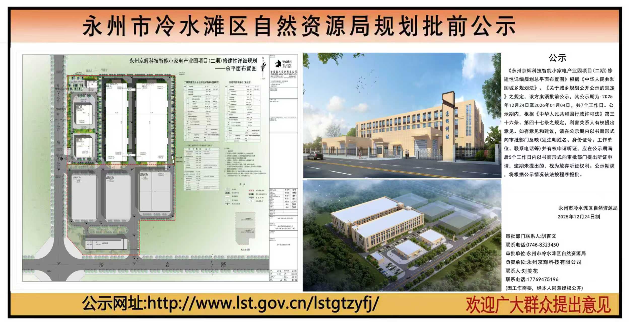 永州市冷水滩区自然资源局规划批前公示《永州京辉科技智能小家电产业园项目(二期)修建性详细规划总平面布置图》