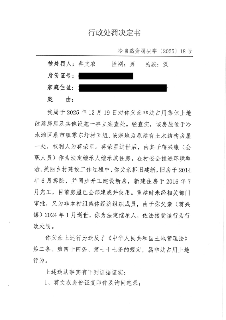 行政处罚决定书 冷自然资罚决字【2025】18号