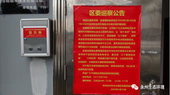 本次巡察时间为3个月左右,巡察期间(2020年4月30日—7月30日),区委巡察组设专门值班电话:15111661543,每天受理电话的时间为8∶00至17:30。根据巡察工作有关规定,区委巡察组主要受理反映永州市生态环境局冷水滩分局领导班子及其成员和重要岗位领导干部问题的来信来电来访,重点是“三个聚焦”方面的举报和反映。其他不属于巡察受理范围的信访问题,将按规定转交有关部门处理。