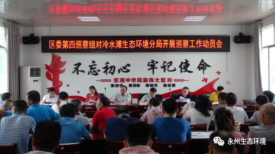 根据冷水滩区委统一部署,2020年5月7日,区委第四巡察组对永州市生态环境局冷水滩分局召开巡察工作进驻动员会。会上,区委第四巡察组组长魏世满就深入学习贯彻中央、省委、市委和区委有关精神,坚定不移深化政治巡察作了讲话。永州市生态环境局冷水滩分局党组书记、局长秦功旭主持巡察进驻动员会并作表态讲话。区委第四巡察组副组长胡菲,联络员吕艳平及工作人员胡大梁、雷新华,被巡察单位永州市生态环境局冷水滩分局全体干部职工、近年来退休人员参加会议。