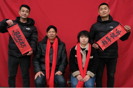 在传递墨香祝福的同时,为村民拍摄全家福的暖心服务也在各村同步开展。狮子岭村、大陂岩村、五峰岭村委会门口,临时搭建的拍照点前排起了长队。鲜艳的红幕布前,工作人员在仔细调试设备,为每一户家庭记录美好瞬间,拍照过程中和村民交流。村民们特意换上新装——老人们穿上珍藏的新衣服,孩子们戴上喜庆的红围巾,年轻夫妻精心整理了仪表。