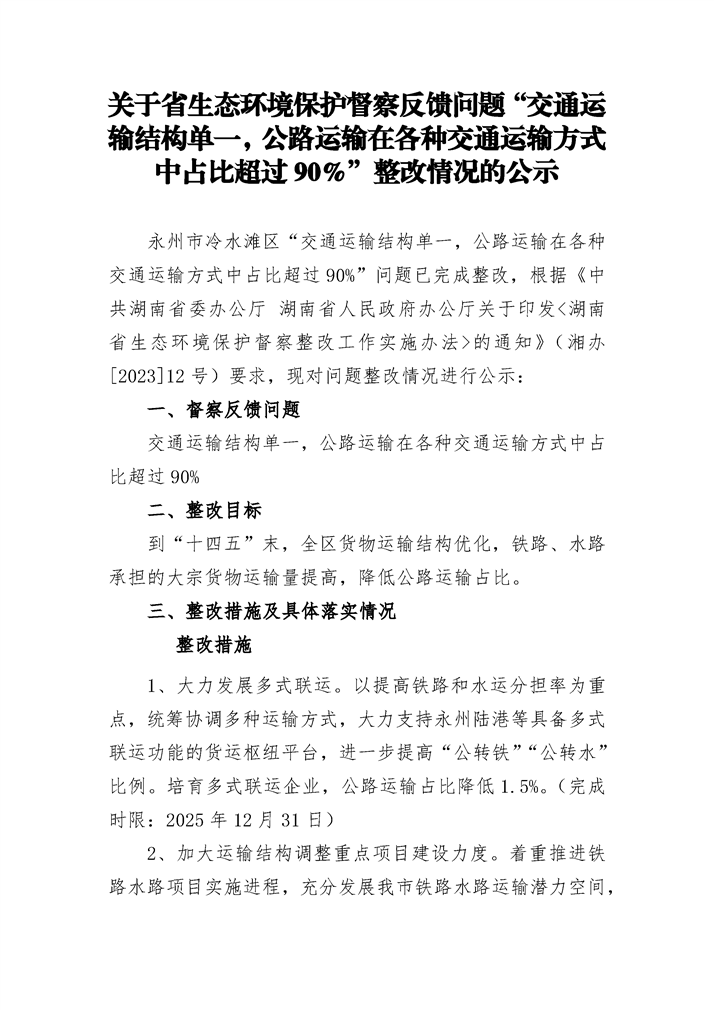 冷水滩区关于省级生态环境保护督察反馈问题整改情况的公示