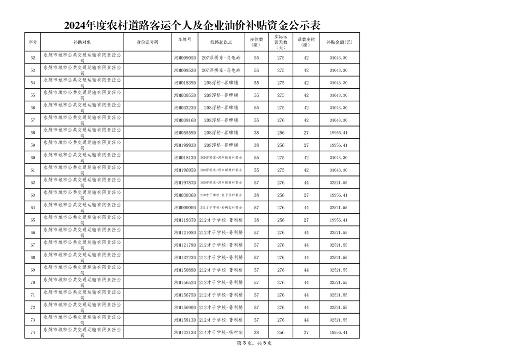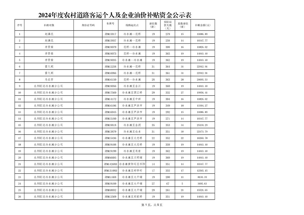 2024年度农村道路客运个人及企业油价补贴资金公示表