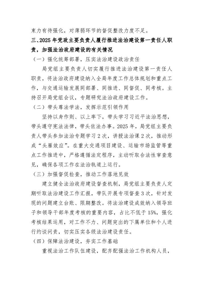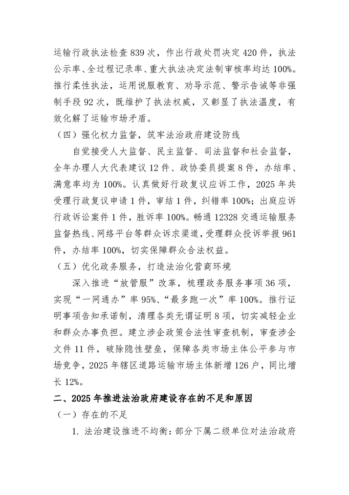 2025年度冷水滩区交通运输局法治政府建设年度报告