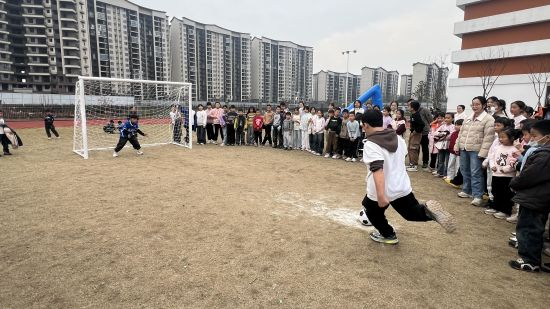 点球大战区域,小选手们助跑、射门动作利落,守门员飞身扑救尽显专注,每一次进球都引来阵阵喝彩;足球接力赛上,孩子们以仰卧起坐运球的趣味方式竞技,默契配合彰显团队乐趣。