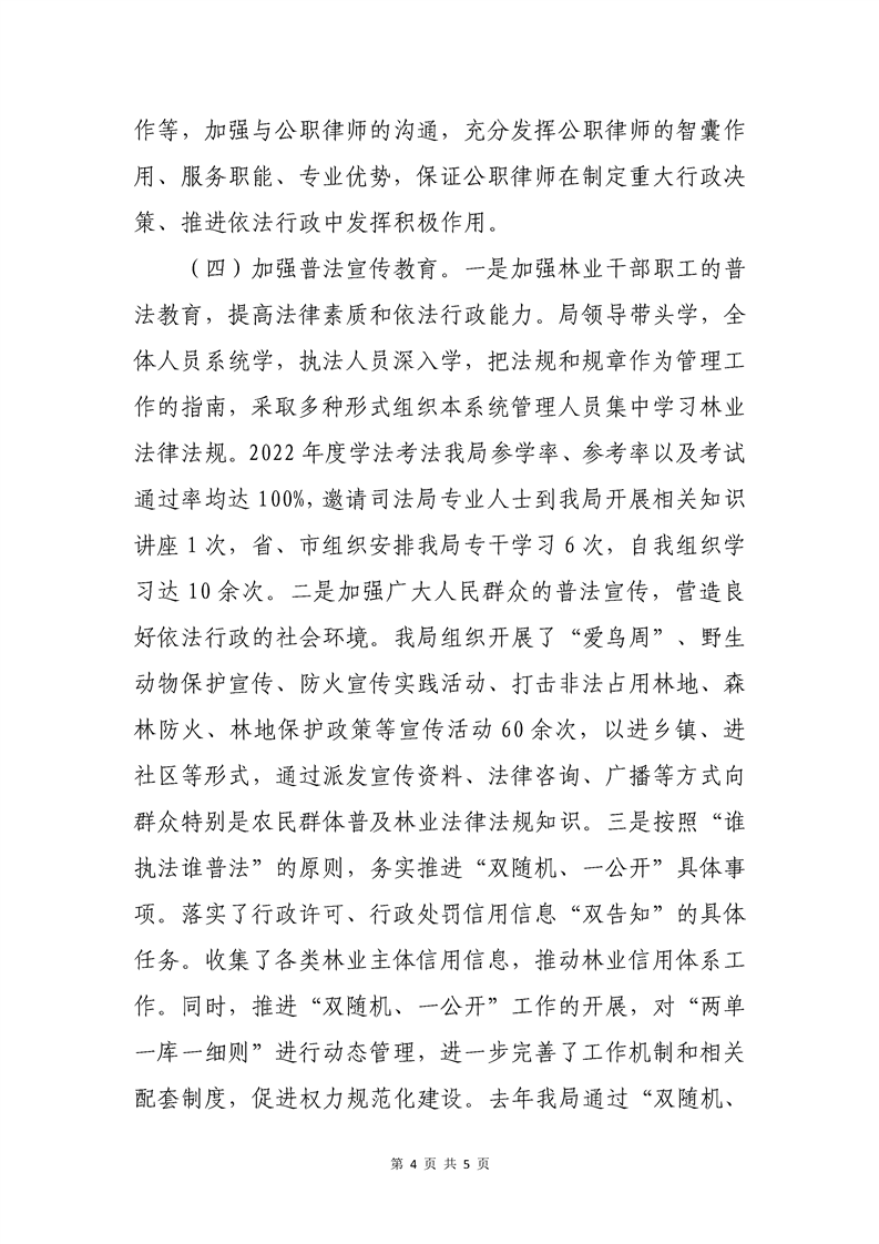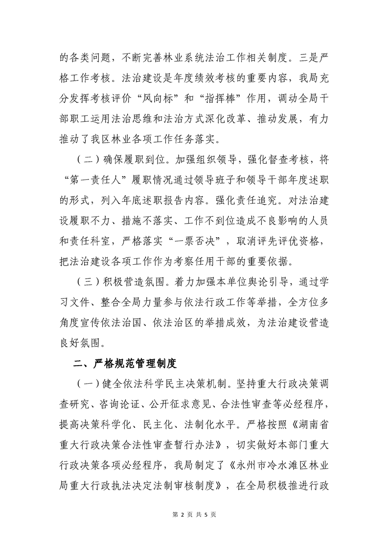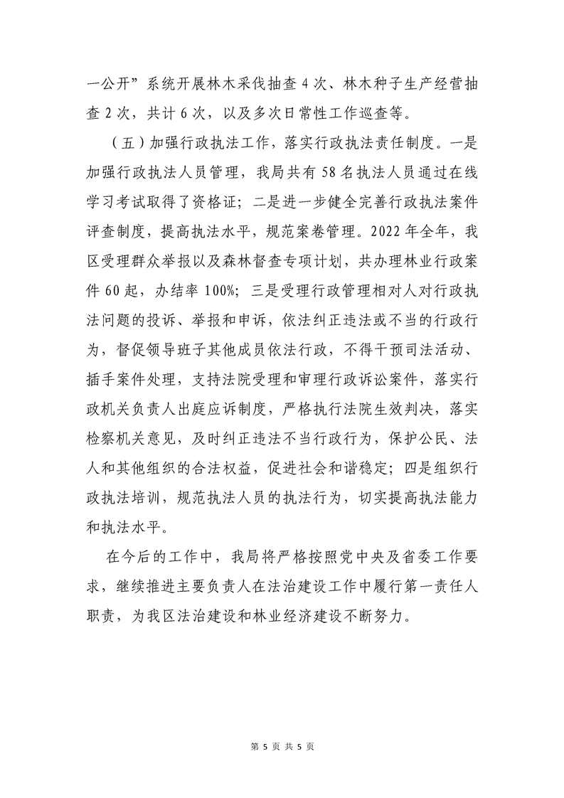 2022年度冷水滩区林业局主要负责人履行推进法治建设第一责任人职责情况报告