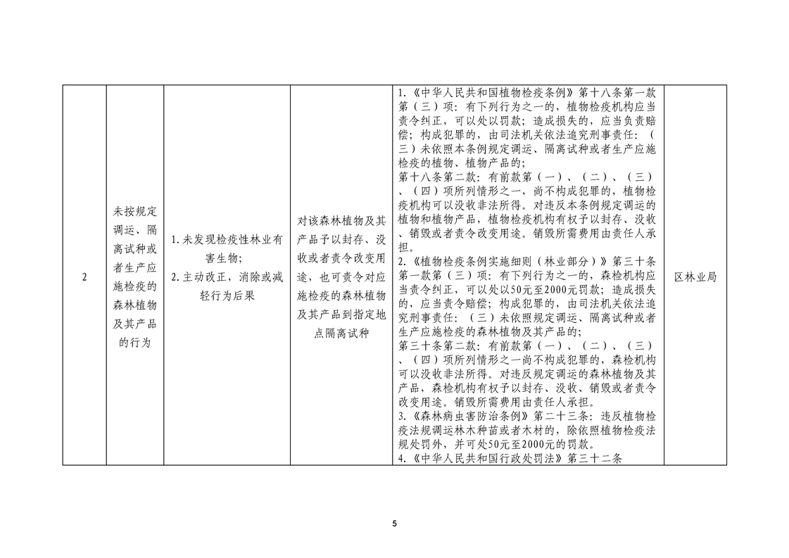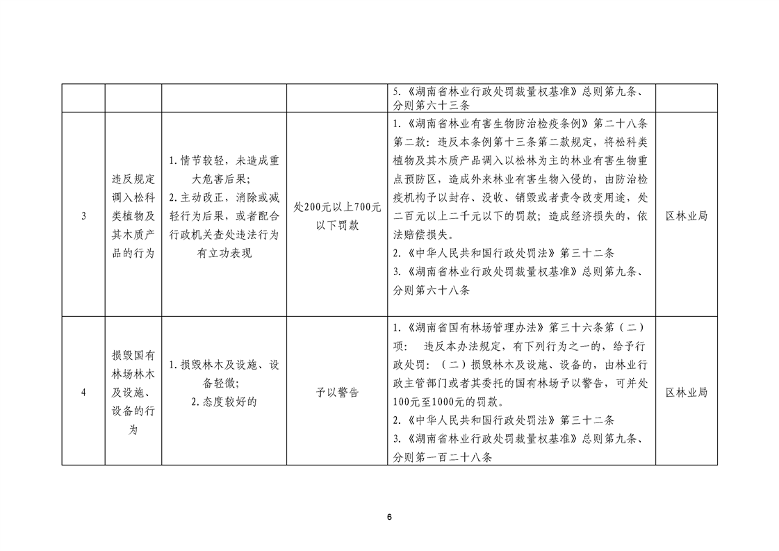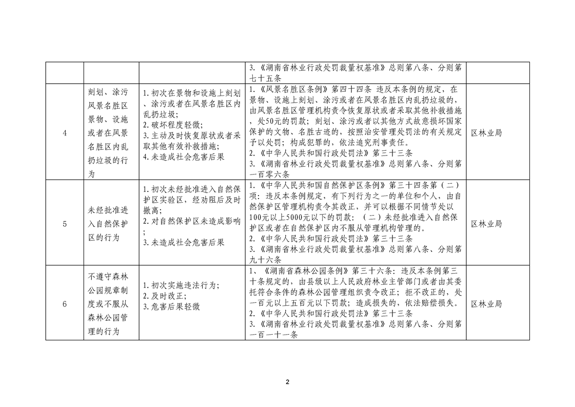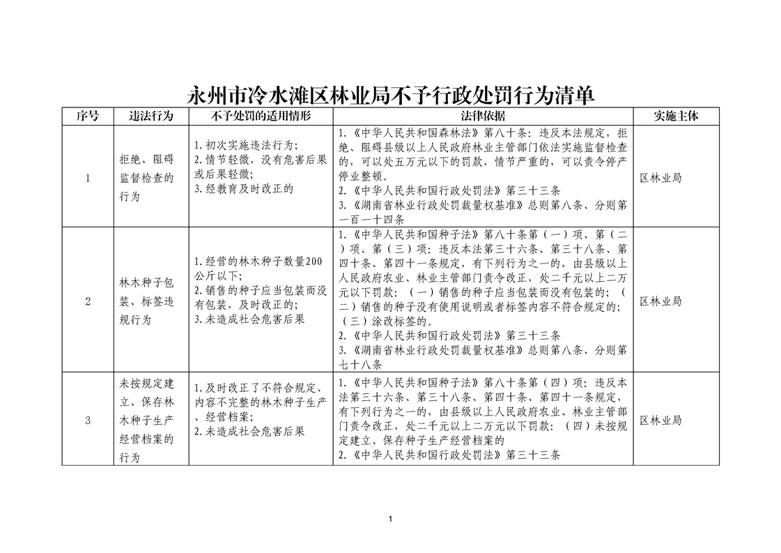 永州市冷水滩区林业局不予行政处罚行为清单和市场主体一般违法行为从轻减轻林业行政处罚清单