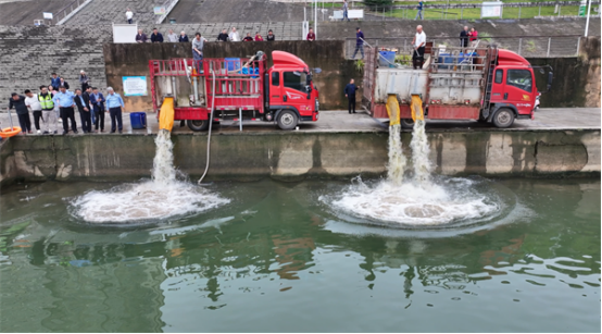 9月26日,永州市冷水滩区在湘江冷水滩段三多亭码头开展鱼类人工增殖放流活动。