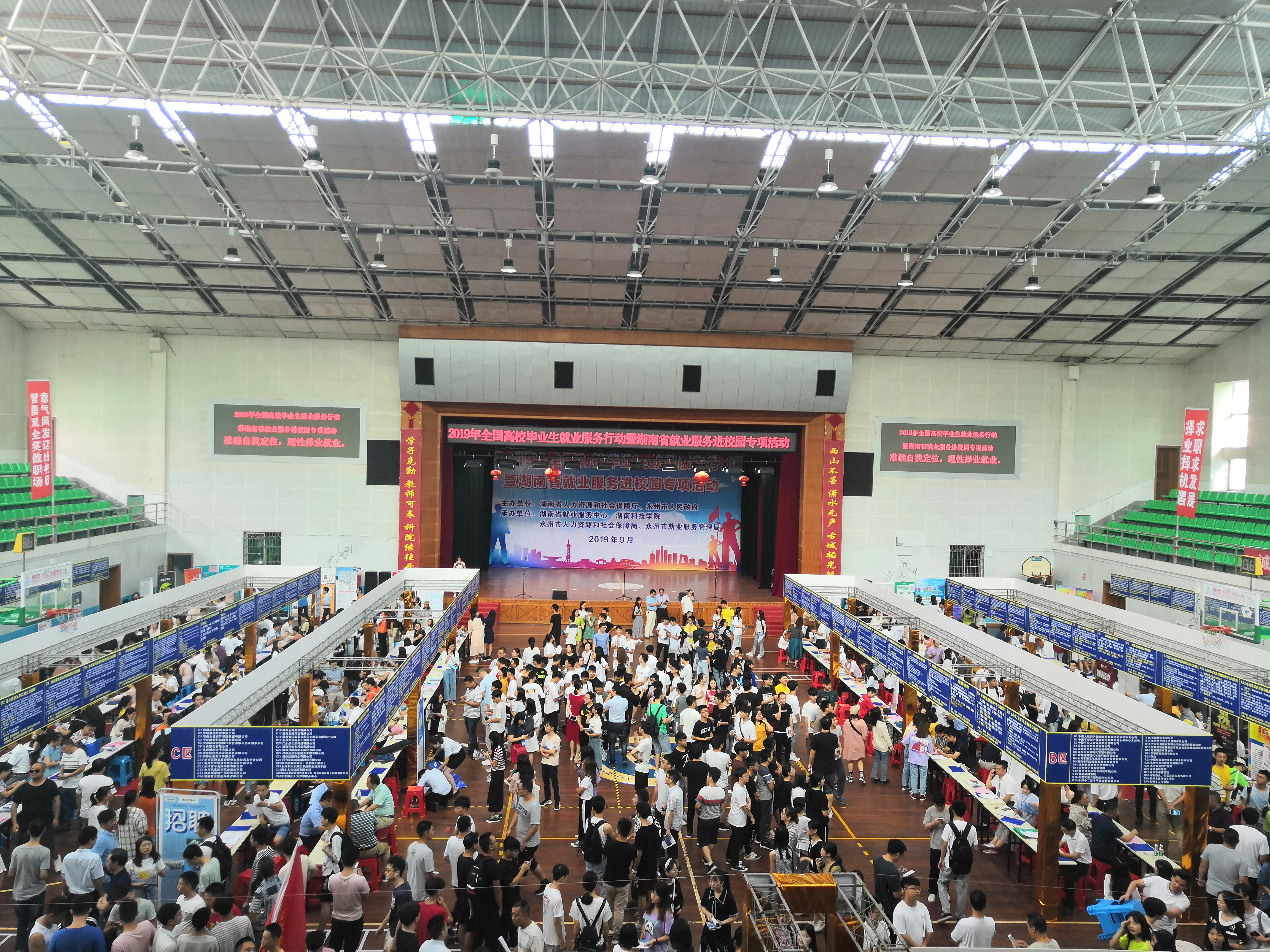 冷水滩区人社局于4日上午在湖南科技学院体育馆内参加高校毕业生就业服务“送政策、送服务、送岗位”专项活动。