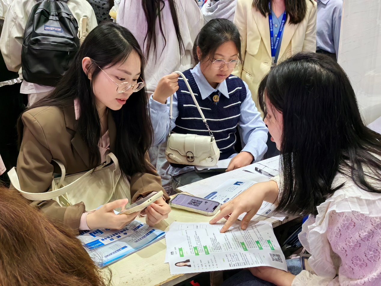 在招聘会现场,人社部门的政策宣传区也成了求职者的“热门打卡地”,设有专人为高校毕业生提供职业分析、指导,解答线上求职、档案存放、见习、社保缴纳等问题。现场还设置简历门诊,指导毕业生修改简历,用好求职敲门砖。