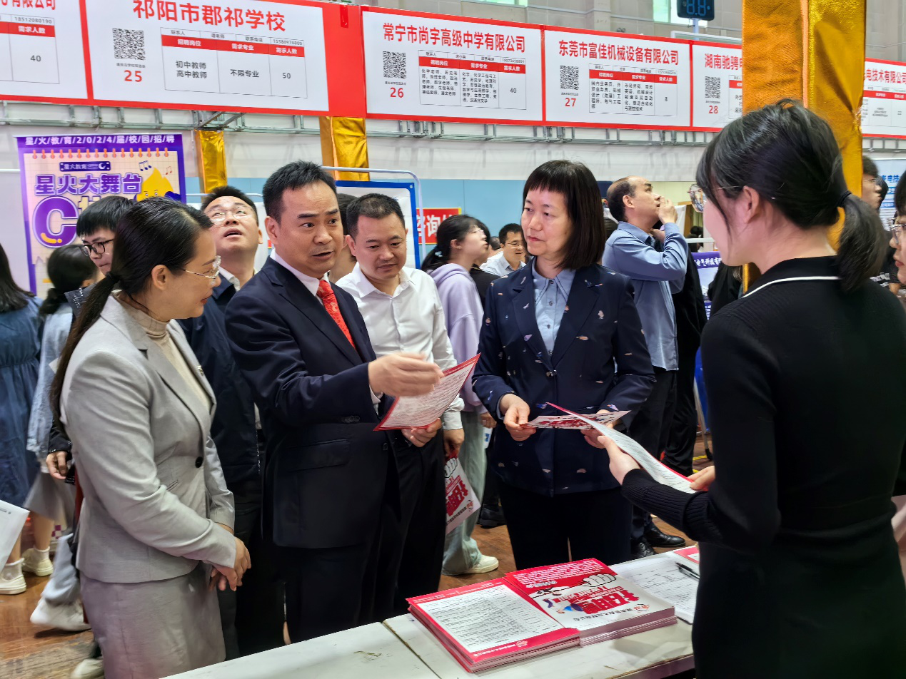 永州市启龙成章高级中学在这场“抢人大战”中收获了33份简历。招聘负责人介绍,“我们今天带来的教师岗位完全针对应届毕业生,待遇优厚,而且提供培训机会,有很多求职者前来了解,专业匹配度很高。”