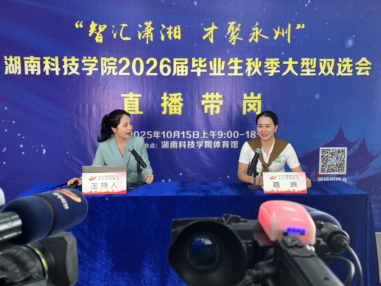 (通讯员:彭蟾)2025年10月15日,永州市校园招聘系列活动——湖南科技学院专场招聘会隆重启幕,这是永州市落实湖南省“智汇潇湘 才聚湖南”专项行动的重要举措。本次活动创新构建“1+4”多元服务模式,以“招聘会+直播带岗+政策宣介+就业服务”融合发力,搭建起高效、精准的人才对接通道,组织201家市内外优质用人单位参会,提供银行金融、教育教学、智能制造、数字经济等领域岗位5371个,吸引3200余名毕业生入场,现场接收简历1652份,为高校毕业生就业注入强劲动能。