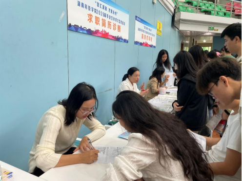 活动现场设置求职指导、简历门诊、政策宣传三大服务区,提供个性化咨询指导、一对一政策解读、简历优化及岗位对接等全程服务,不少毕业生通过扫描“永就业”二维码,便捷获取青年见习、档案管理等线上服务。湖南科技学院 “青春π”求职加油站同步开启,为毕业生提供AI政策助手、3秒极速荐岗、AI简历和模拟面试测评服务;多家用人单位在会后即时组织了现场面试,核心需求岗位基本招满。活动通过资源整合与精准服务,有效提升了毕业生的求职成功率与满意度。