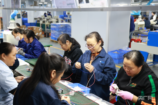 永州科力尔智能电气有限公司生产车间里,工人正在组装配件(央广网发 周艳梅 摄)