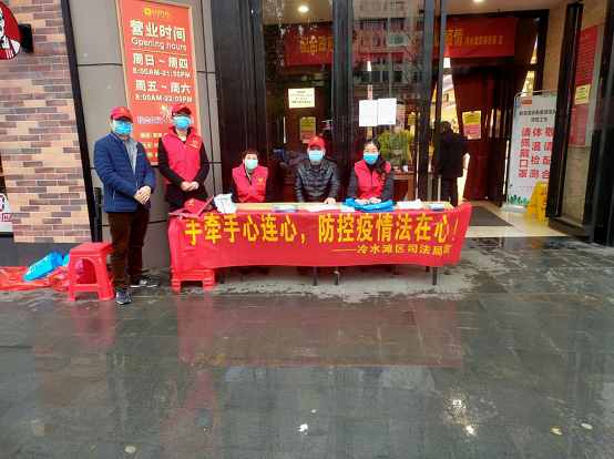 一方面,工作人员给来往群众测量体温,发放《疫情防控法律知识简明读本》,普及疫情防控相关法律法规,现场讲解防控常识以及疫情防控期间公民的权利与义务;另一方面,逐一走访商场内已复工复产的商户,发放《疫情防控期间企业复工复产公共法律服务有关事项的公告》,为企业、商户复工复产遇到问题时提供法律服务渠道。