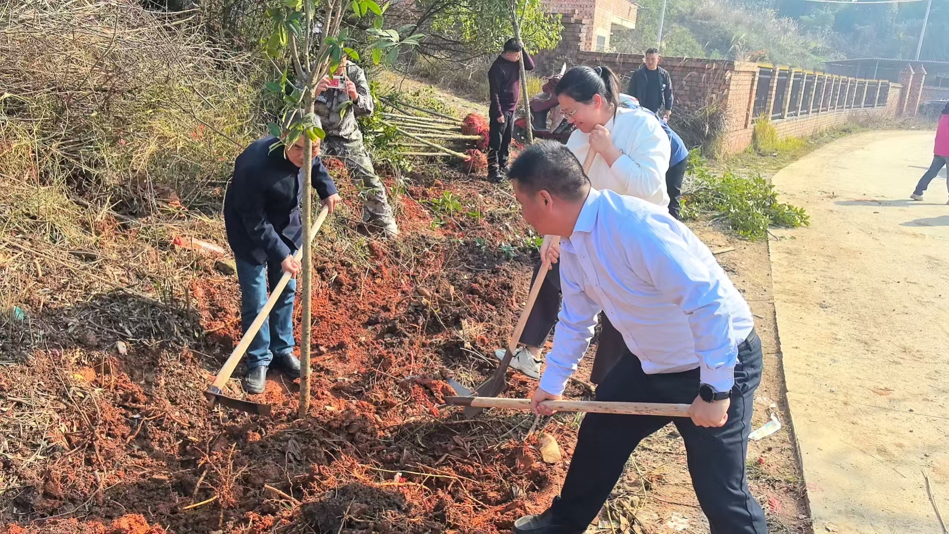 3月13日,冷水滩区珊瑚街道组织干部职工和群众在珍珠塘村开展义务植树活动。