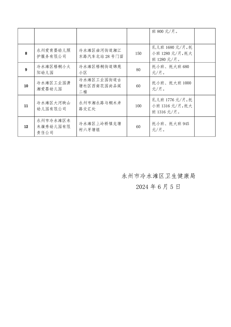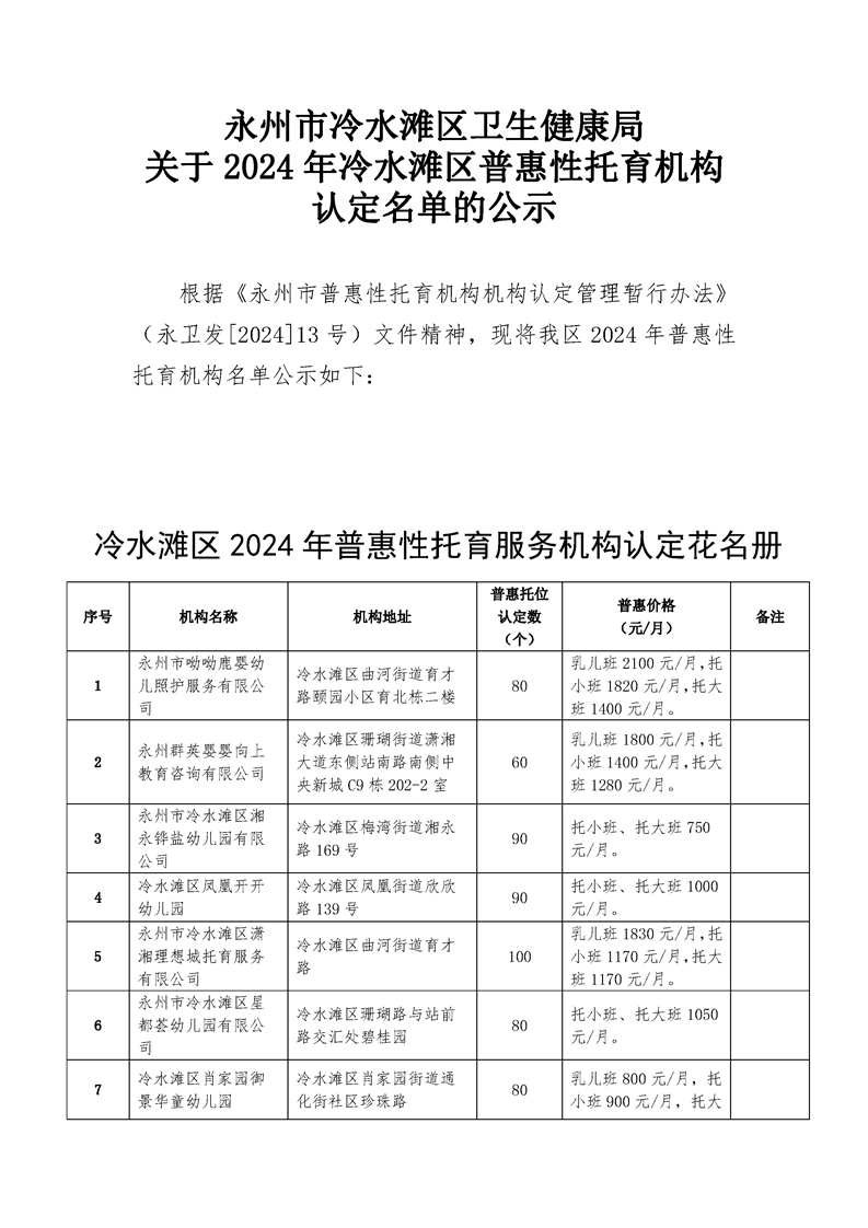 永州市冷水滩区卫生健康局关于2024年冷水滩区普惠性托育机构认定名单的公示