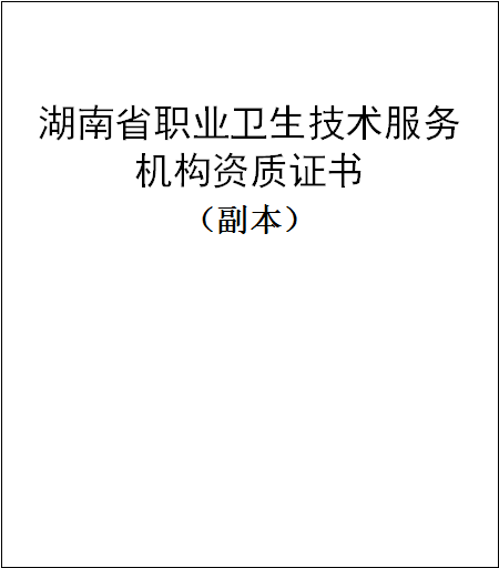 湖南省职业卫生技术服务机构资质证书样式(正本,A4大小)