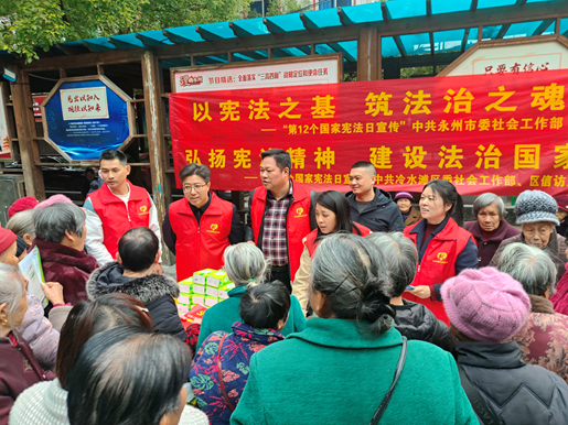 2025年12月4日,我们迎来了我国第12个国家宪法日。为了弘扬宪法精神,推动法治社会建设,中共冷水滩区委社会工作部与冷水滩区信访局在冷水滩区梧桐街道白竹亭社区广场举办了一场别有生趣的宪法宣传活动。