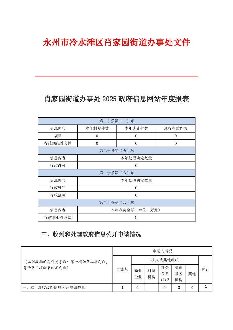 名称: 肖家园街道办事处2025年政府信息网站年度报表