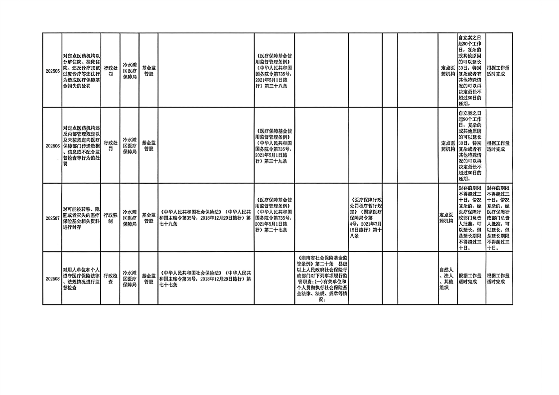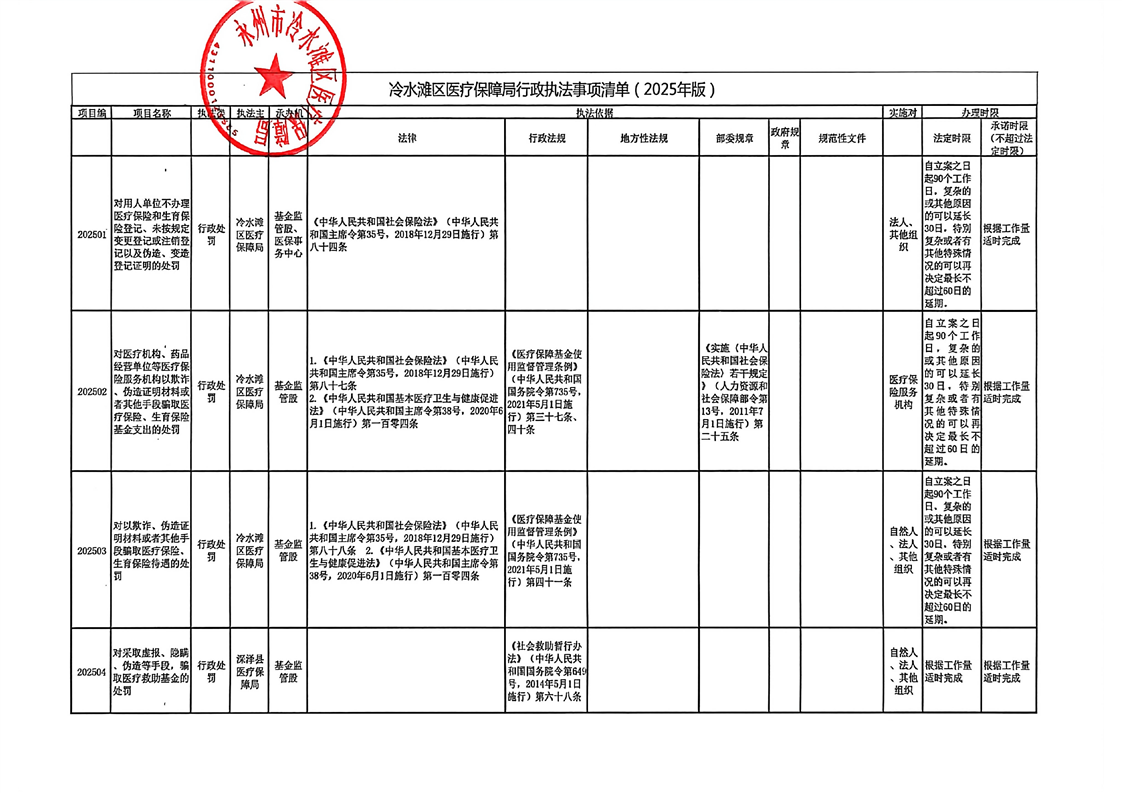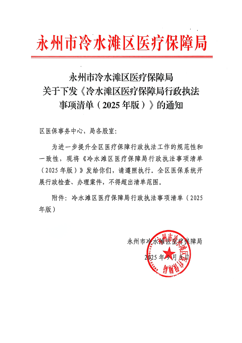 关于下发《冷水滩区医疗保障局行政执法事项清单(2025版)》的通知