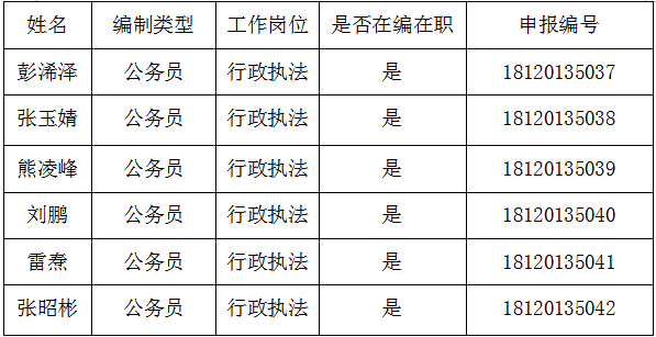 现公示以下行政执法人员持有的中华人民共和国行政执法证,特此公告。