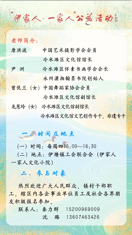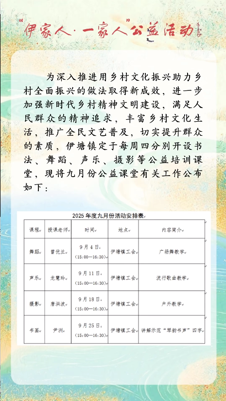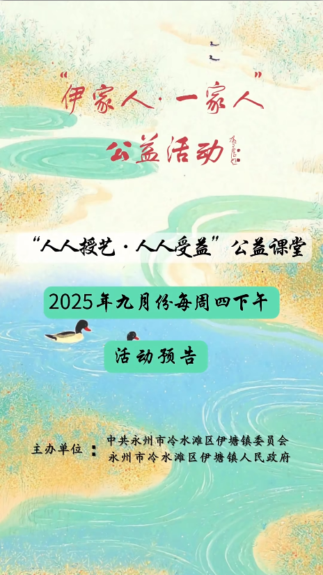 “伊家人·一家人”公益活动之“人人授艺·人人受益”公益课堂第33期活动预告