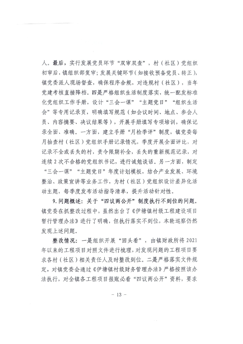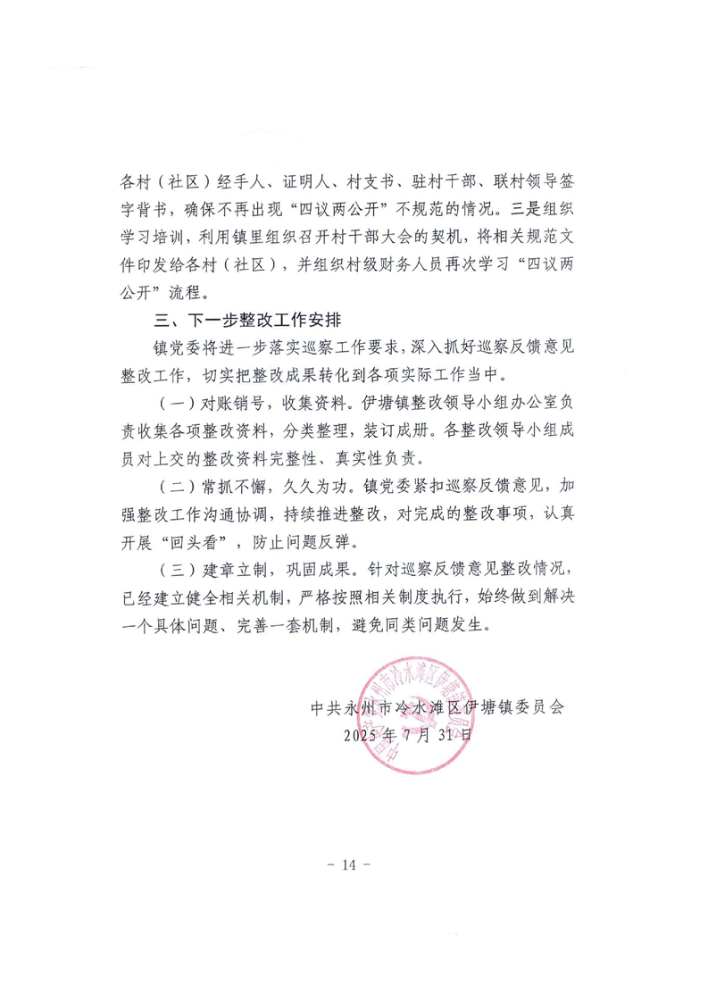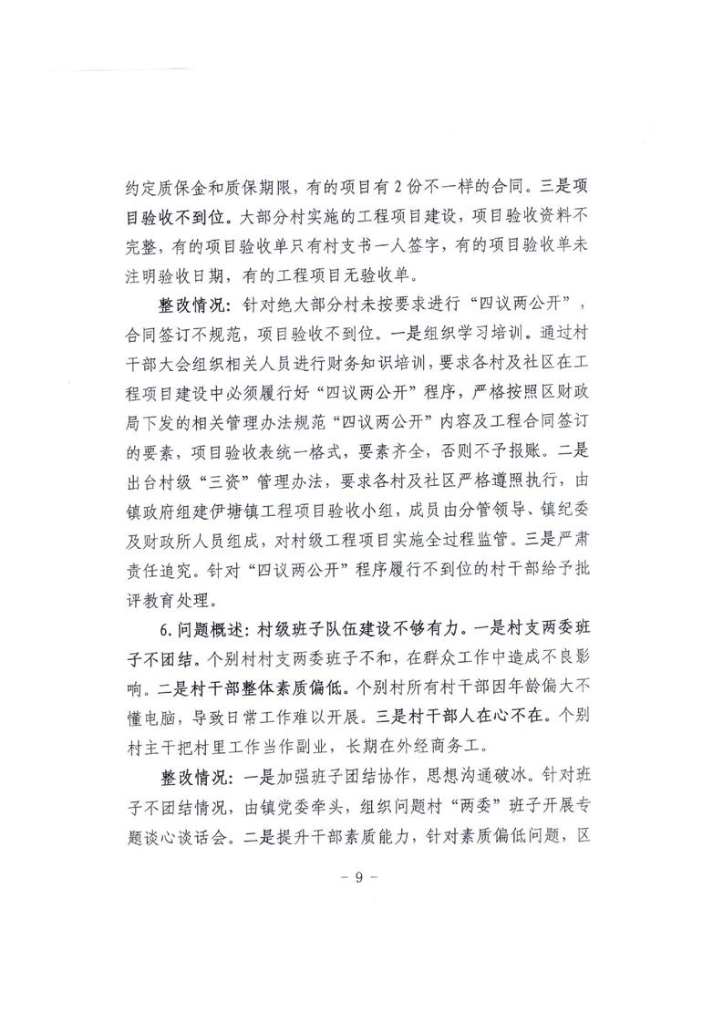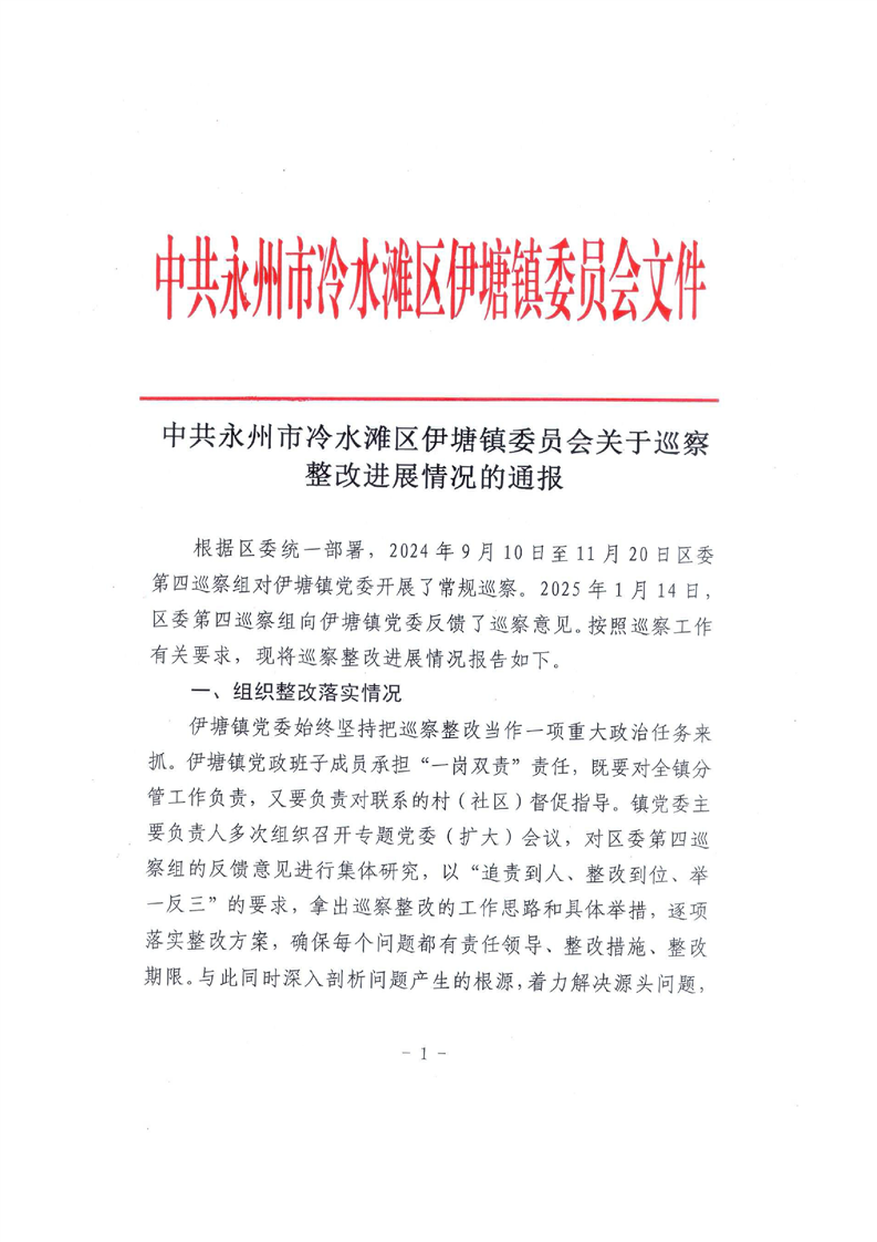 中共永州市冷水滩区伊塘镇委员会关于巡察整改进展情况的通报