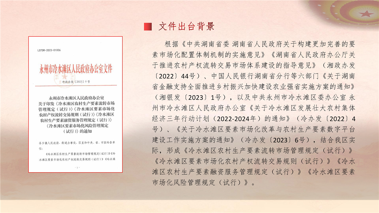 图解:关于《冷水滩区农村生产要素流转市场管理规定(试行)》《冷水滩区要素市场化农村产权流转交易规则(试行)》《冷水滩区农村生产要素融资服务管理规定(试行)》《冷水滩区要素市场化风险管理规定(试行)》的政策解读